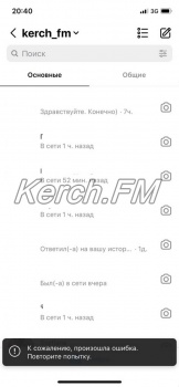 В редакцию Керчь.ФМ вечером 19 марта начали обращаться керчане с жалобой на сбой популярной соцсети «Инстаграм» и мессенджера «Ватсап». Действительно, страницы перестали загружаться, невозможно открыть ни фото, ни сообщения.