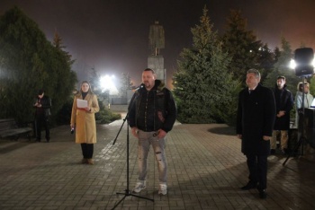 Колонна мотоциклистов проехала по городу, а затем в сквере Славы состоялась церемония возложения цветов к Вечному Огню и передачи саженца для Аллеи Русской весны, которая будет высажена завтра в рамках акции "Русский лес" на горе Гасфорта в городе-герое Севастополе.