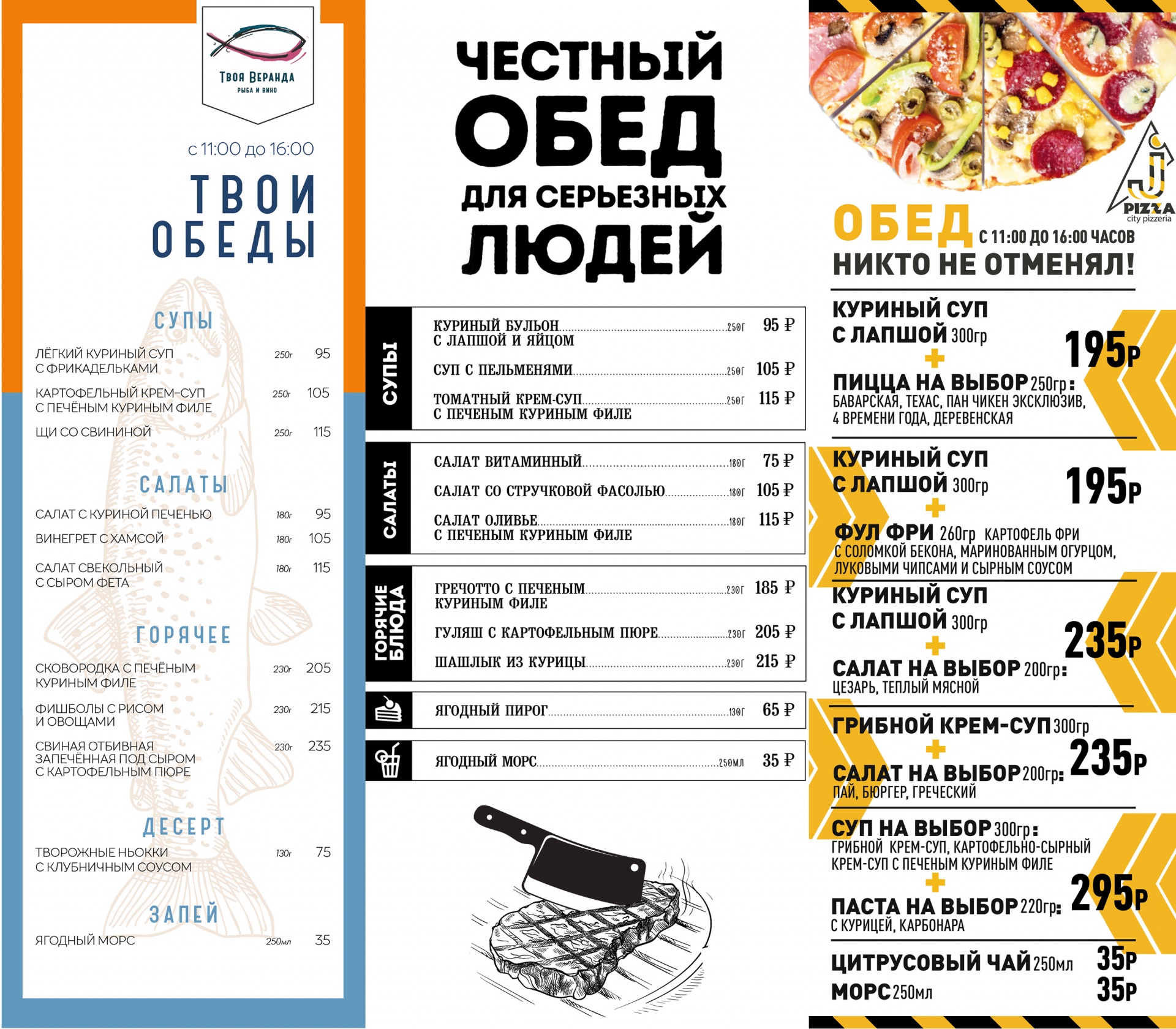 Всю неделю с понедельника по пятницу с 11:00 до 16:00 готовим обеды по честным ценам!