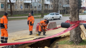 В Керчи 22 марта водоканал продолжает работы на улице Горького по замене канализационного коллектора. Напомним, что на прошлой неделе в этом месте провалилась часть дороги, через несколько дней здесь начались активные работы, - передает Керчь.ФМ.