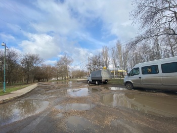 Сегодня, 24 марта, проехать в данном месте на низкой машине затруднительно, ведь не понимаешь, где глубоко, а где нет. Такого рода лотерея.
