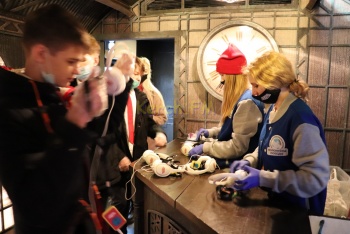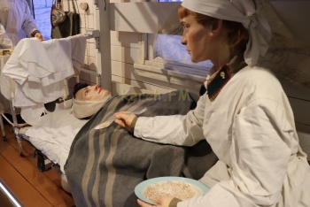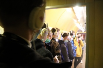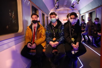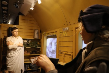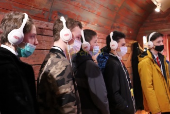 Как и в прошлом году, при входе в передвижной музей каждому члену группы выдают наушники и чип, который запускает виртуального гида.