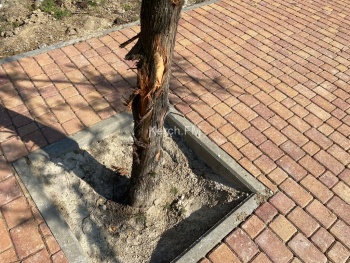 Отметим, что многие деревья не вырубили, а просто уложили около них плитку. Работы движутся, но если посмотреть вокруг, то кроме новой красоты осталась та же разруха. Напротив парка огромная куча мусора и заброшенная территория. Кроме этого, дорога находится в ужасном состоянии и когда асфальтировали парковку, дорогу там не сделали.