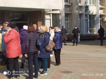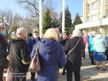 Более ста человек с утра собрались у здания администрации. Собравшиеся против закрытия социального рынка. Разгонять пенсионеров прислали несколько экипажей силовиков, - передает Керчь.ФМ.