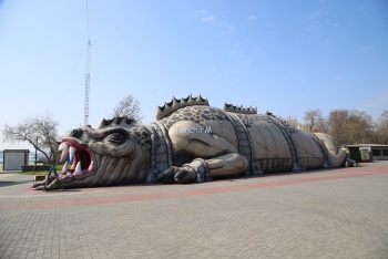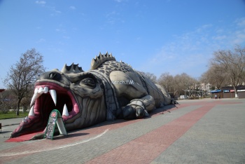 В Керчи на городской набережной установили новый аттракцион. Он выглядит в виде дракона огромного размера. Внутрь могут спокойно заходить взрослые и дети в полный рост, - передает  Керчь.ФМ.