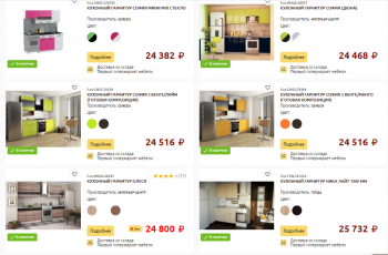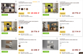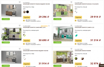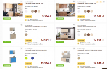 Кухонные гарнитуры: модульные, готовые, столы и стулья для кухни и буфеты. (770 моделей)