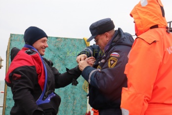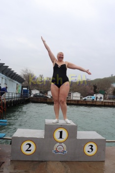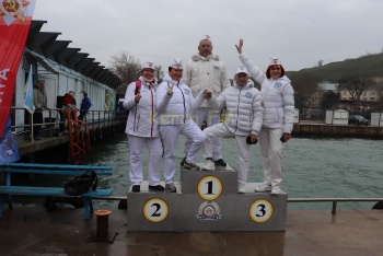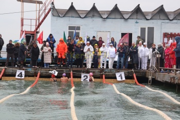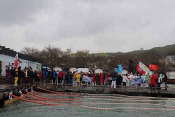 На международные соревнования по холодовому плаванию в Керчи прибыли участники из Белоруссии, Донецка, Казахстана и России. Температура воды для моржей непривычно теплая, + 8 градусов, но атрибуты в виде шапки, валенок и купальника присутствуют у многих, - передает Керчь.ФМ.