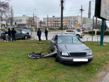 В Керчи 5 апреля днем, на Ворошилова произошло тройное ДТП. Как передает корреспондент Керчь.ФМ, в результате столкновения иномарок, один из автомобилей выкинуло на газон.
