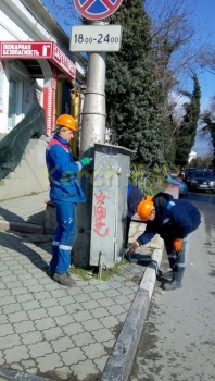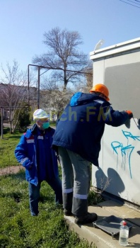 Керченский РЭС готовит свои объекты к 11 апреля. Сотрудники красят, моют и стирают надписи с трансформаторных подстанций и опор, - передает Керчь.ФМ.