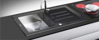 Мойки из искусственного камня, кварцевые мойки, комбинированные мойки (кварц и нержавеющая сталь), комбинированные мойки (нержавеющая сталь и стекло).