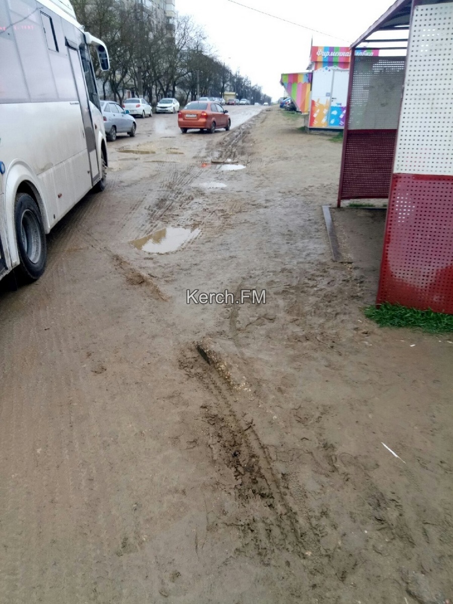 К остановке на Семи Ветрах керчане пробираются через грязь
