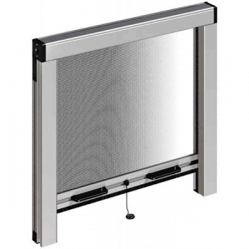 Специальный контейнер крепится в верхней части оконного или дверного проема. В нем в скрученном виде находится валик из рулонной сетки. За специальную ручку или шнур полотнище можно растянуть и перекрыть открытый проем, зафиксировав край полотнища внизу. Эта конструкция хороша для тех проемов, которые часто необходимы полностью открытыми.