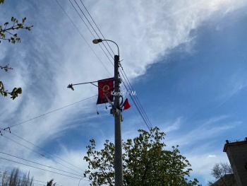 В Керчи 26 апреля часть улицы Кирова украсили праздничной атрибутикой к 9 мая, - передает Керчь.ФМ.