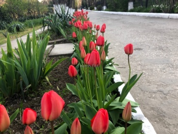 Отметим, также красивые аллеи тюльпанов можно встретить у КГМТУ, гостиницы завода «Залив», под окнами местных жителей. Также много тюльпанов цветет на кольце на КУОРе.