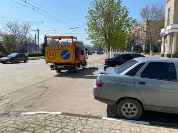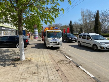 В Керчи 30 апреля перед парадом Победы на Кирова готовятся нанести новую разметку. Как передает журналист Керчь.ФМ с места событий, рабочие уже завезли спецтехнику.