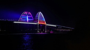 «Завершена модернизация подсветки арок Крымского моста: автодорожный и железнодорожный арочные пролеты доосвещены дополнительными светильниками. Теперь иллюминация имеет цвета государственного флага со стороны Черного и Азовского морей. Мероприятие приурочено к празднованию 76-летия Победы в Великой Отечественной войне», - сообщили в пресс-службе.
