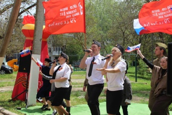 Парадным строем прошли военнослужащие Керченского гарнизона, военные марши исполнил духовой оркестр войсковой части 6939. В исполнении керченских артистов прозвучали песни военных лет и чтецкая миниатюра "Письма на фронт".
