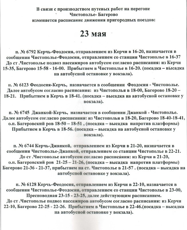 пригородных поездов 23 мая. Об этом сообщает пресс-служба администрации Керчи, - передает Керчь.ФМ.