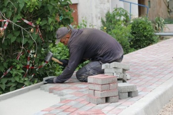 Также, на придомовых территориях по ул. Л. Толстого, д. № 46 и ул. Победы, д. № 21, ул. Л. Толстого, д. № 40/20 и ул. Мира, д. № 18 кипит работа. Здесь уже обустроены бордюры, полным ходом идет укладка плитки. Рабочие готовят основания для установки площадок согласно проектам благоустройства этих придомовых территорий.