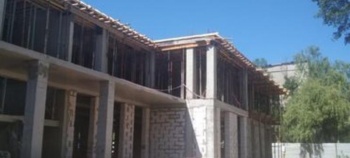 - В объеме 80% произведена работа по устройству кладки стен периметра первого этажа из газобетонных блоков.