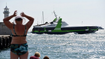 Судно "Комета" впервые начало курсировать между крымскими приморскими городами в августе 2018 года. в прошлом году морское сообщение с помощью "Кометы" осуществлялось с июля по сентябрь: за это время были перевезены 16 тысяч пассажиров.