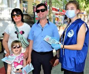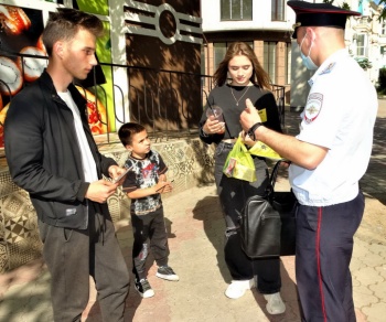 Каждому участнику акции правоохранители и волонтеры вручили тематические листовки и напомнили, что по всем вопросам, связанным с преступными посягательствами, необходимо обращаться в полицию.