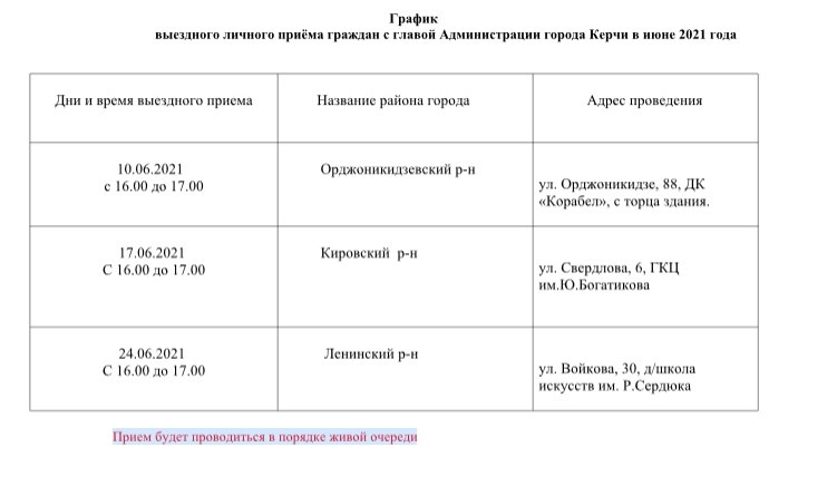 Глава администрации Керчи Сергей Бороздин проведёт выездной личный приём граждан в июне 2021 года. Об этом сообщает пресс-служба администрации Керчи, - передает Керчь.ФМ.