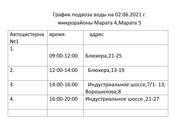 По вышеуказанным адресам будет осуществляться подвоз воды специализированным автотранспортом предприятия.