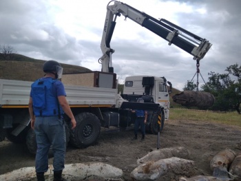 Всего к пиротехническим работам по обезвреживанию взрывоопасных предметов от МЧС России было привлечено 6 человек личного состава и 2 единицы техники.