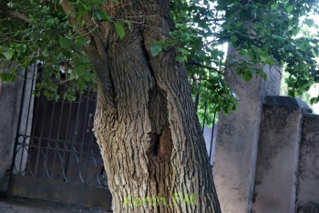 «Со стороны улицы Курсантов стоят 4 старых дерева, они, наверное, ровесники храма, который здесь раньше был. Деревья мощные, ветки диаметром 30 - 40 см уже откололись от ствола. Одно дерево уже наклонилось под углом 45 градусов. Корни выворачивают почву, а мы ходим с ожиданием когда они упадут. Другое дерево лежит на газовой трубе.
