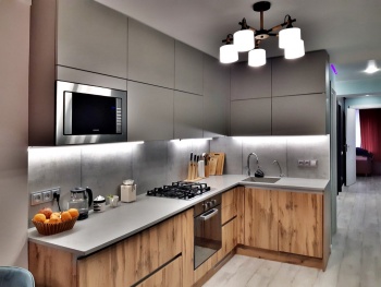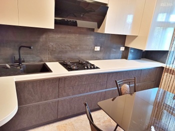 Фасады пластик: верх белый глянец (Италия), низ матовый с фактурой бетона (Германия)