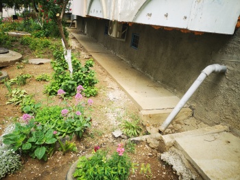 До благоустройства под тротуаром от фасада дома проходила асбестобетонная труба к проезжей части. Так предусмотрели при строительстве дома. Новые проекты разбирают старый тротуар с ливневкой, устанавливают новый без водостока. В итоге вся дождевая вода сливается в подвал, на фундамент дома, труба обрывается под газоном и дождем смывает его на тротуар.