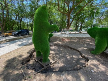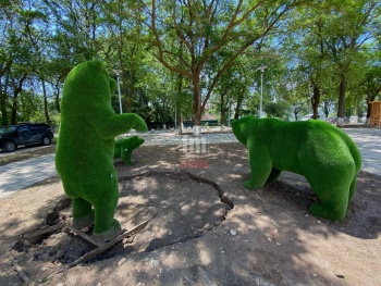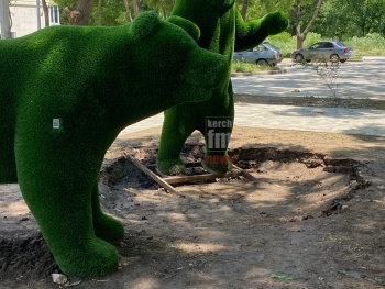 На обновленной территории Дворца Пионеров вновь очередной перформанс. Если ранее здесь проходил мусорный фестиваль, где в роли зрителей были не люди, а мусорные стаканчики с этикетками, то в этот раз медведи решили заранее приготовиться к зиме. Вооружившись лестницей, они начали строить берлогу, — передает Керчь.ФМ.