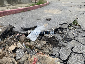 В Керчи 17 июня на улице Театральной потоком воды подняло асфальт. Также дорожное полотно покрылась трещинами, - передает Керчь.ФМ.