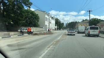 В 10 часов работы идут на проезжей части по ул. Свердлова, а также на Кирова, у здания администрации