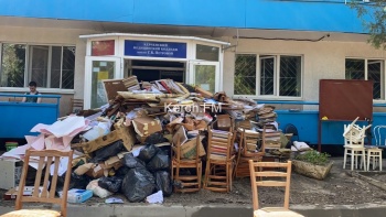 В медколледже Керчи 21 июня пытаются справиться с последствиями потопа. Студенты и преподаватели вышли на субботник. Все мокрое и неподлежащее восстановлению выносят на улицу и складывают на кучу. Там учебники, документы, тетради деревянные стулья, - передает Керчь.ФМ.