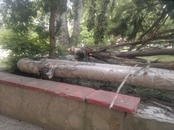 «Полгода назад обращались в 1 Гор. компанию и к Администрации города, чтобы навели порядок со старыми деревьями тополями во дворе дома 2/5 по Бульвару Пионеров, так как деревья очень старые, высокие, сухие и кривые, во время сильного ветра они уже касаются крыши и балконов дома, разрушают их, а также несут угрозу жизни и здоровью. граждан. Ответ один, или полный игноцент города в администрацию, стоять в кашляющих очередях и подавать самим заявку, так как сами они не в состоянии….Вот недавно рухнула сухая ветка возле прохода у магазина Бульвар, чуть не прибив людей, фото прилагаю, при этом ветка упала на трубы теплосети, никто не убирает и никому нет дела, тем более 1 гор. компании, которая только деньги собирать умеет. Там на дереве по центру ещё более крупная сухая ветка, которая до отопительного сезона обязательно рухнет и перебьёт отопительные трубы, будет ущерб и не будет отопления...Внутри двора, при ветре высокие деревья трещат и тоже рано или поздно рухнут на дом, потом придётся людей расселять и предоставлять жильё…..Если не дай бог будет трагедия, вот со всеми этими обращениями, будем виновных бюрократов привлекать к суду», - рассказали керчане.