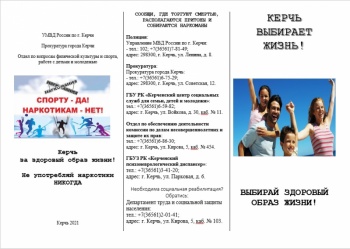 Памятка «Керчь выбирает жизнь!» призывает граждан вести здоровый образ жизни, а также разъясняет ответственность за правонарушения и преступления в сфере незаконного оборота наркотиков.