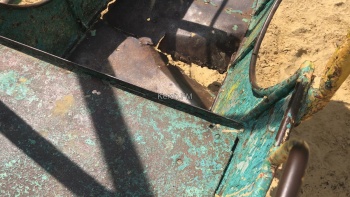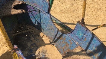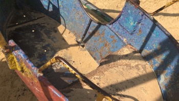 Теперь этот песок находится везде: и на качелях, и кораблике, песочнице и обуви всех, кто ступил на площадку. А вот ремонта или хотя бы демонтажа опасных конструкций здесь нет: ржавые опасные качели с торчащим железом, прогнившие машинки и опасная горка - все для наших детей.