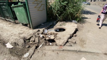 Власти Крыма отчитываются, что в Керчи и Ялте последствия подтоплений практически ликвидированы. Но если мы пройдемся все по той же улице Госпитальной, можно наблюдать одну грязь. Дорогу если и почистили, то немного. Разбитый и открытый люк, мусор, грязная дорога, вместо бордюров в некоторых местах - кучи земли, на газонах - спиленные ветки деревьев.