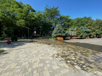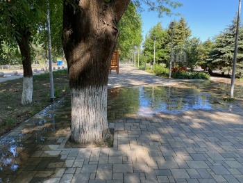 Территорию возле фонтана у Дворца Пионеров подтапливает водой