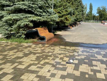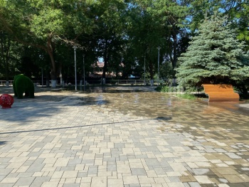 Рядом с фонтаном на Дворце Пионеров, который открыли в мае этого года, но счастье длилось не долго и он зацвел, из люка по всему тротуару разливается вода, — передает Керчь.ФМ.