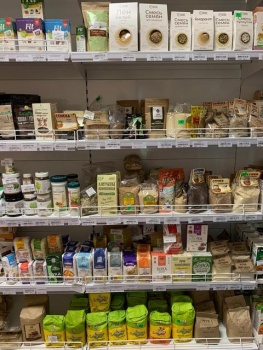 Полезные сладости, конфеты, печенье, напитки, кофе с добавками в зернах и молотый, огромный выбор муки и многое-многое другое.