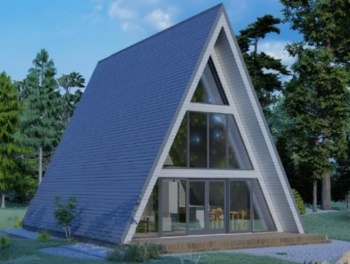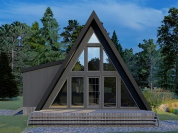 Конструкция A-frame house выполняется в форме треугольника. Такой дом имеет два фасада. Стены при этом отсутствуют - их функцию выполняют скаты крыши, опущенные к самому фундаменту. Здание состоит из каркасной основы, выполненной из нескольких рам треугольной формы. В таком доме можно спроектировать один или два прохода, и даже балкон.
