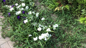 Также цветочные клумбы сильно заросли, трава достигла высоты цветов. Смотрится вся картина не очень.