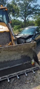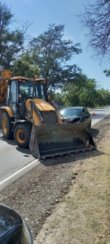 Днем 31 июля по дороге в Багерово, в районе Октябрьского легковой автомобиль врезался в трактор. Фото очевидцы опубликовали в группе «Ситуация на дорогах Керчи», передает Керчь.ФМ.