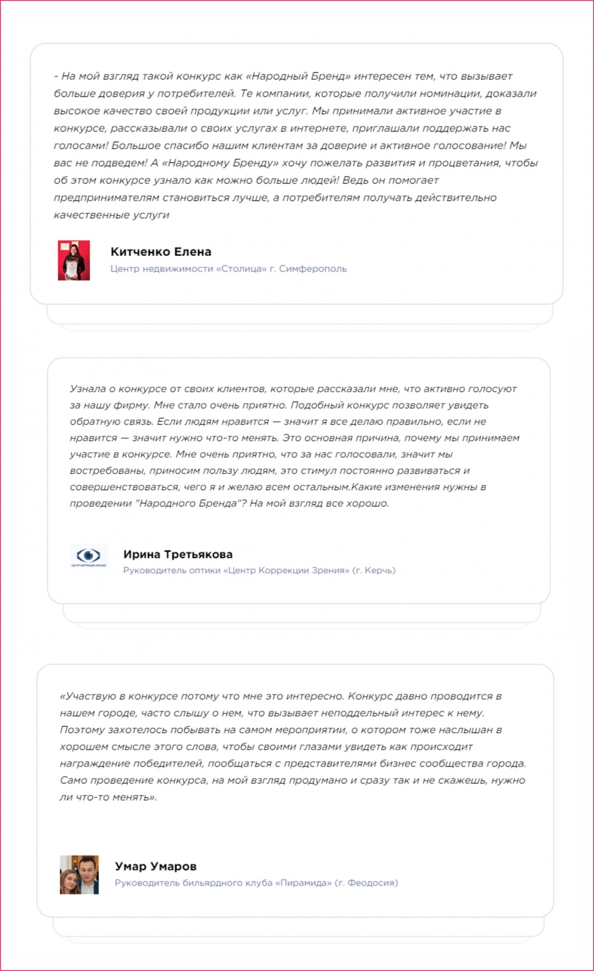 Отзывы о конкурсе «Народный Бренд»