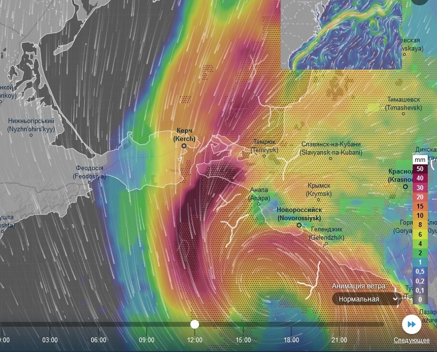 Согласно данным сайтов с подробными прогнозами погоды, завтра над Керчью пройдет действительно очень сильный дождь. Посмотреть прогноз можно здесь