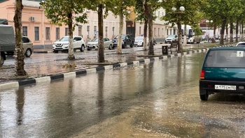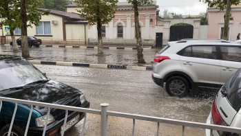 Дождь в центре Керчи прекращается лишь не надолго. По ул. Пирогова, которая ранее была просто мокрая без серьезных луж, начала собираться вода, - передает Керчь.ФМ.
