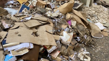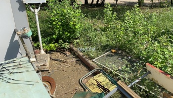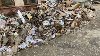 Сегодня, 18 августа, рабочие выносят технику и документы на улицу, которые пострадали от воды. К зданию больницы подъезжают военные машины за мусором.